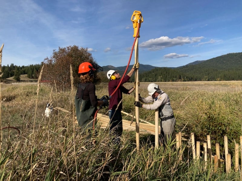 The Lands Council, USFWS, and Gonzaga University are excited to announce that they’ve just finished pounding over 400 wood posts in an effort to build 18 beaver dam analogs (BDAs) along Thompson Creek!
